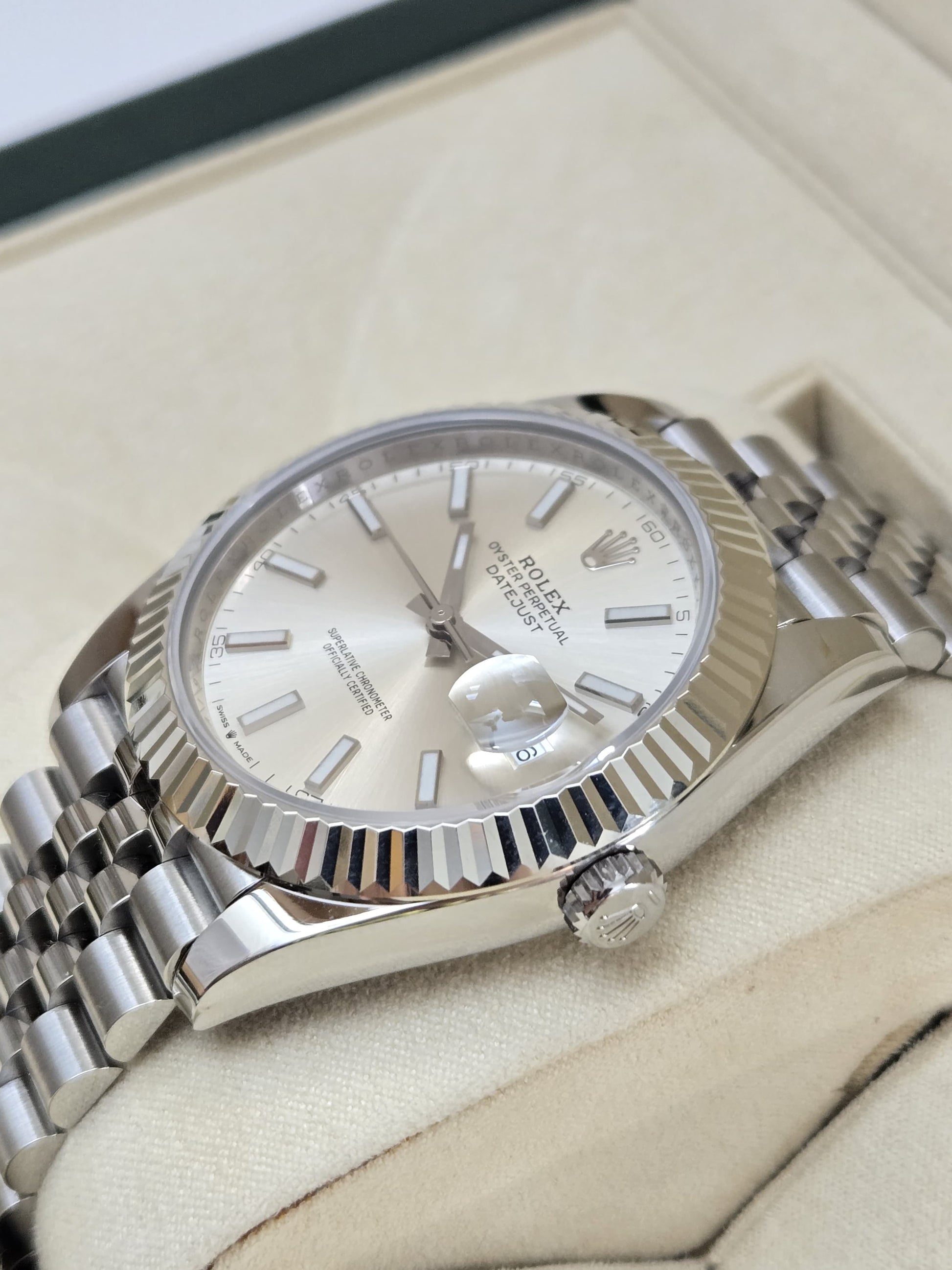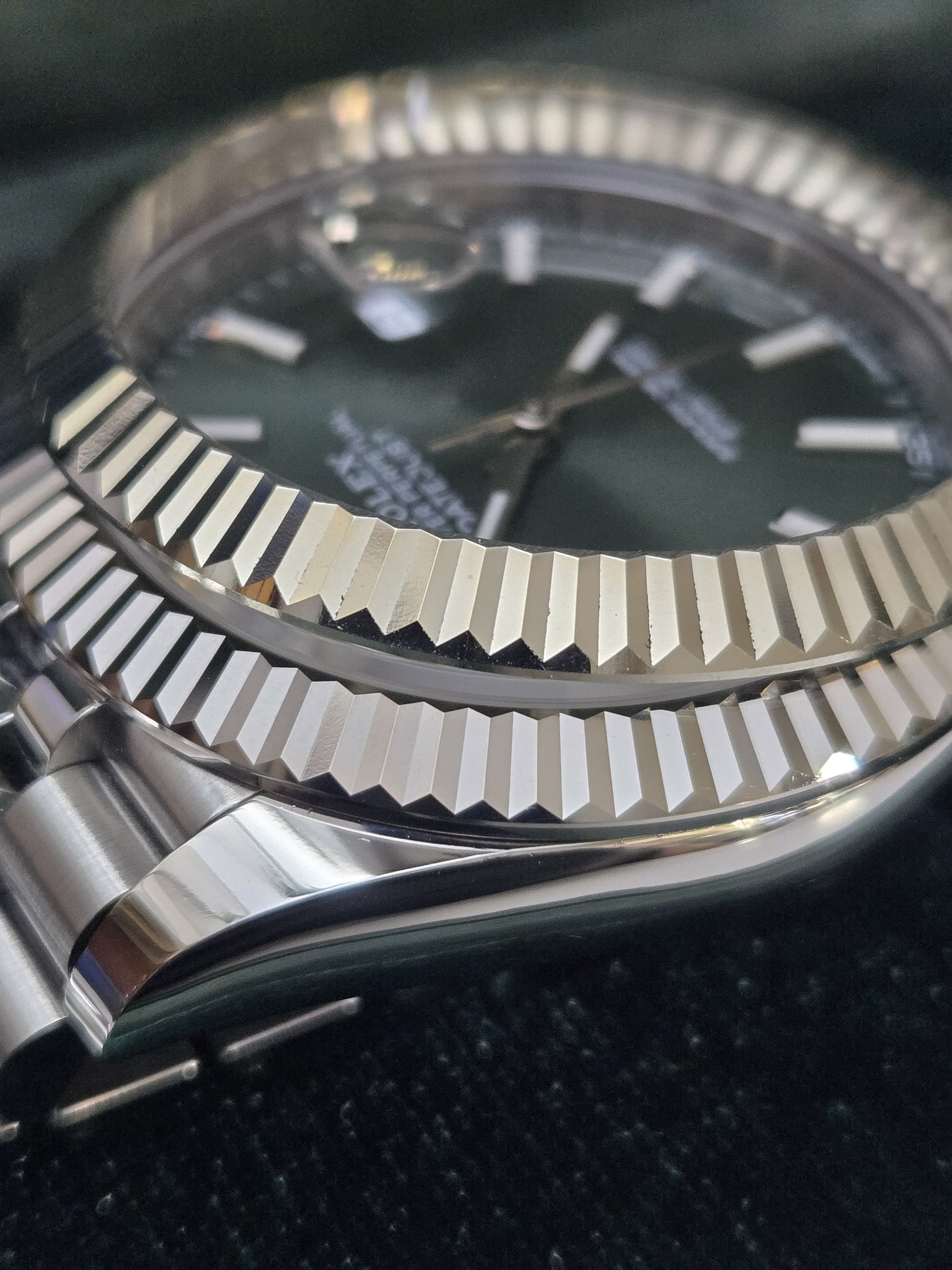 This is a significant upgrade from the common copper-based replicas used by popular factories like CF and VSF. Their bezels tend to dull over time as the copper shows through with wear. In contrast, our bezels are crafted from a durable alloy and finished with double platinum plating, offering a fade-resistant shine that closely resembles white gold. The result is a subtle yet noticeable enhancement in appearance. Pair it with a Deep Crystal for a next-level replica experience.
